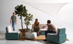 Bold is a family of armchairs, sofas and cofee tables ideal for creating areas of relaxation. With their decisive design, these coloured or lit furnishing accessories always add character to their context. The linearity of the seats structure also comes across in the design chosen for the comfortable cushions, guaranteed for the outdoor use.