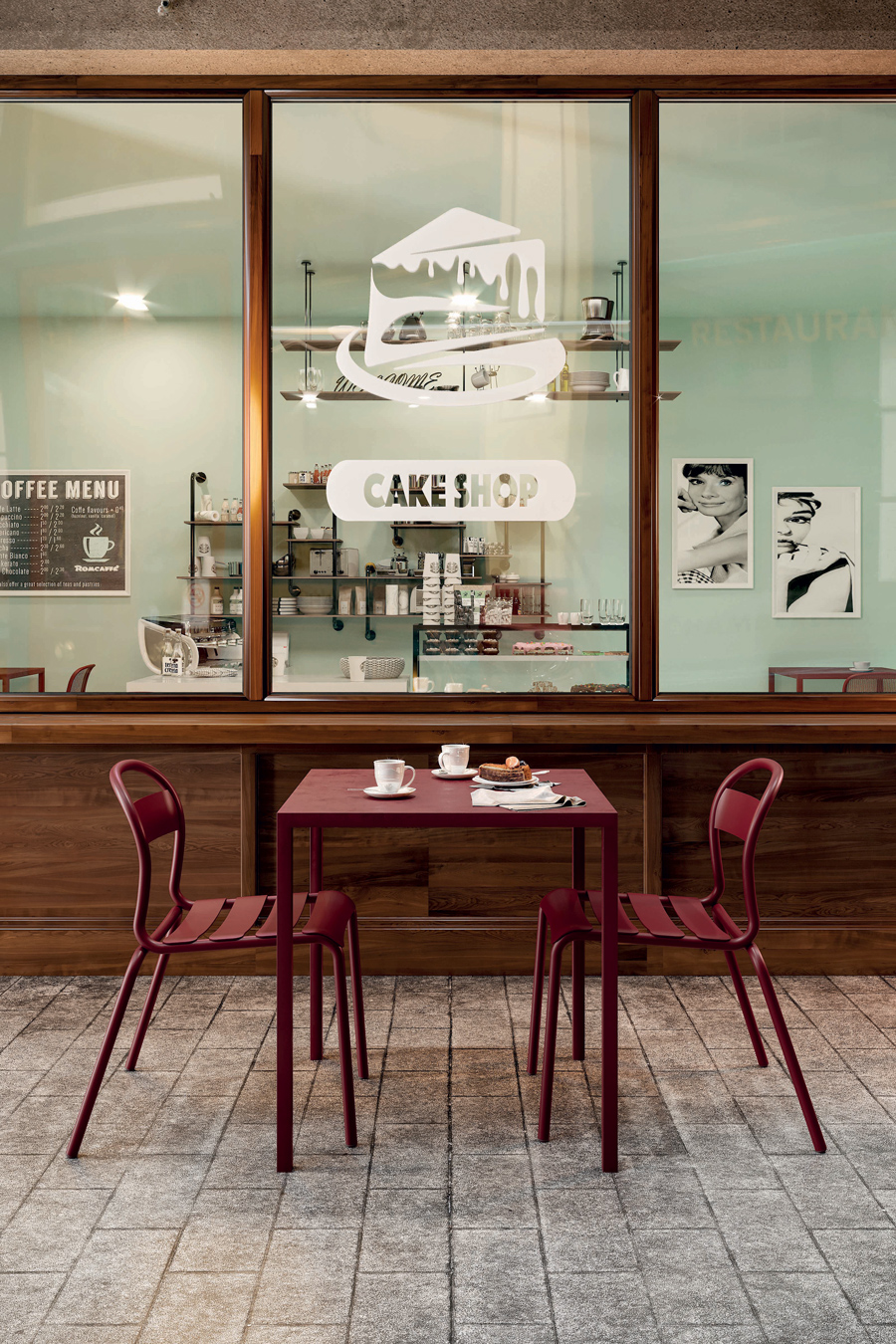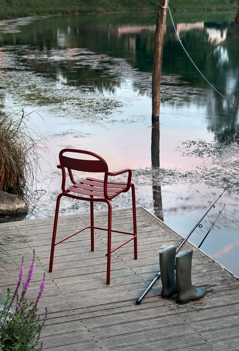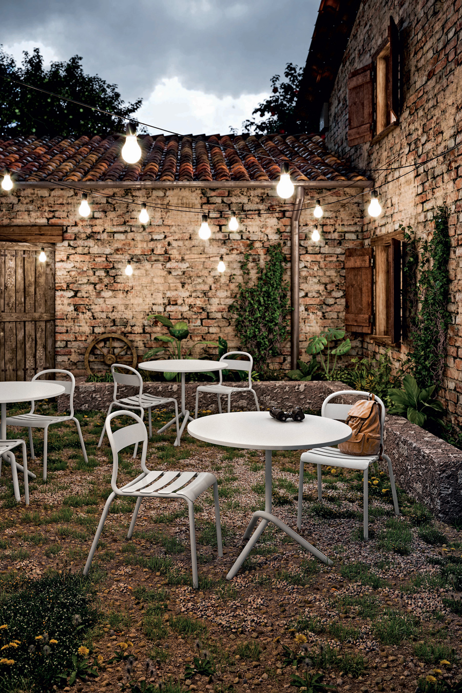 Stecca is a modern, versatile outdoor chair with a lightweight aluminium frame, making it easy to move. Stackable up to 10 high, it’s ideal for bars and restaurants where flexible seating is needed. Available in 8 colours, it can brighten any space and suit your desired atmosphere.